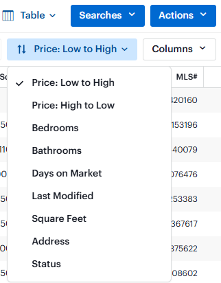 In any Layout view, click the Price: Low to High button to choose from a pre-defined list of Sorting options.