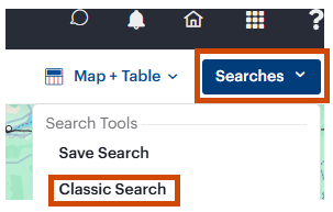 - From the Search Tab, click the Searches button at the top right corner of the Tab. Choose Classic Search from the Searches menu.