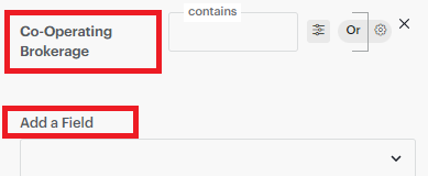 The Co-operating Brokerage filter can be added by scrolling to the end of the filters and choosing the Add a Field drop down.