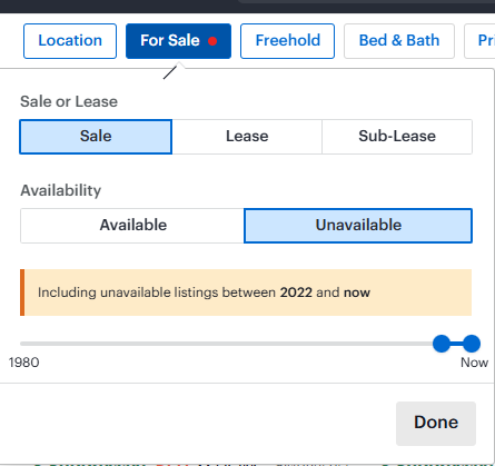 It is only possible to search for unavailable property listings by Co-operating Brokerage.