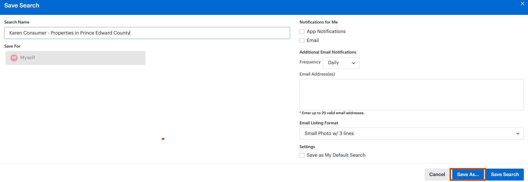 Finally, select Save Search.