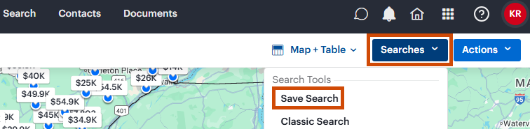 Click Searches, then select Save Search from the menu.