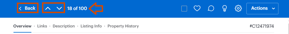 You can move to the next listing in a search or list by selecting the down arrow (chevron) at the top-left corner of the listing or the up arrow to get back to the previous one.