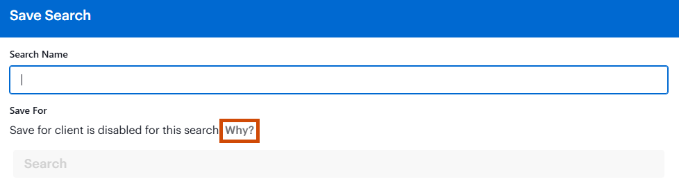 Save for client is disabled for this search. Why?